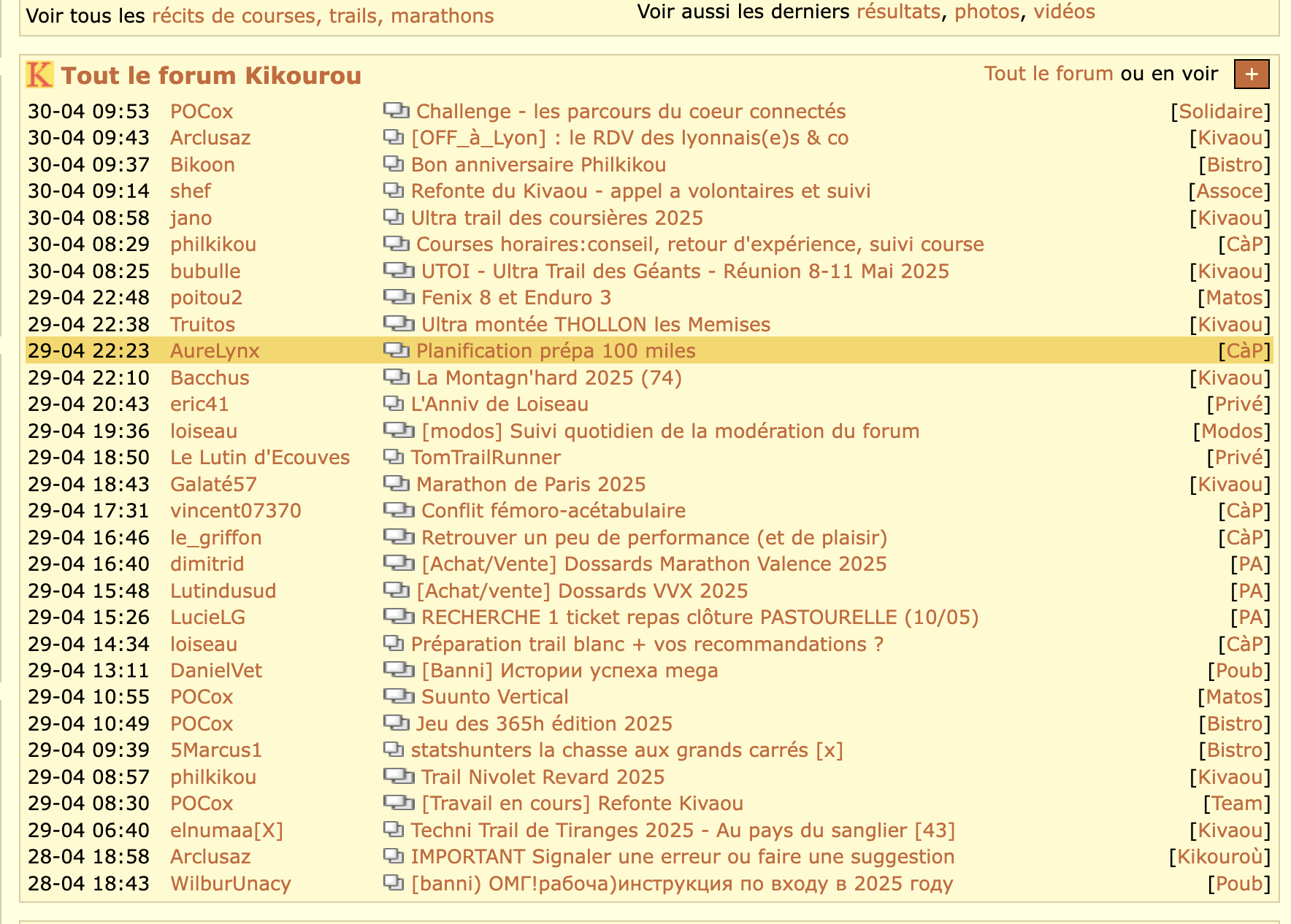 Sans vouloir cafter, je vois actuellement un coureurr, juste derrière POCox, avec 30,18km; dont je crois reconnaître le nom et qui n'a même pas mis "O-Kikourou" comme équipe...