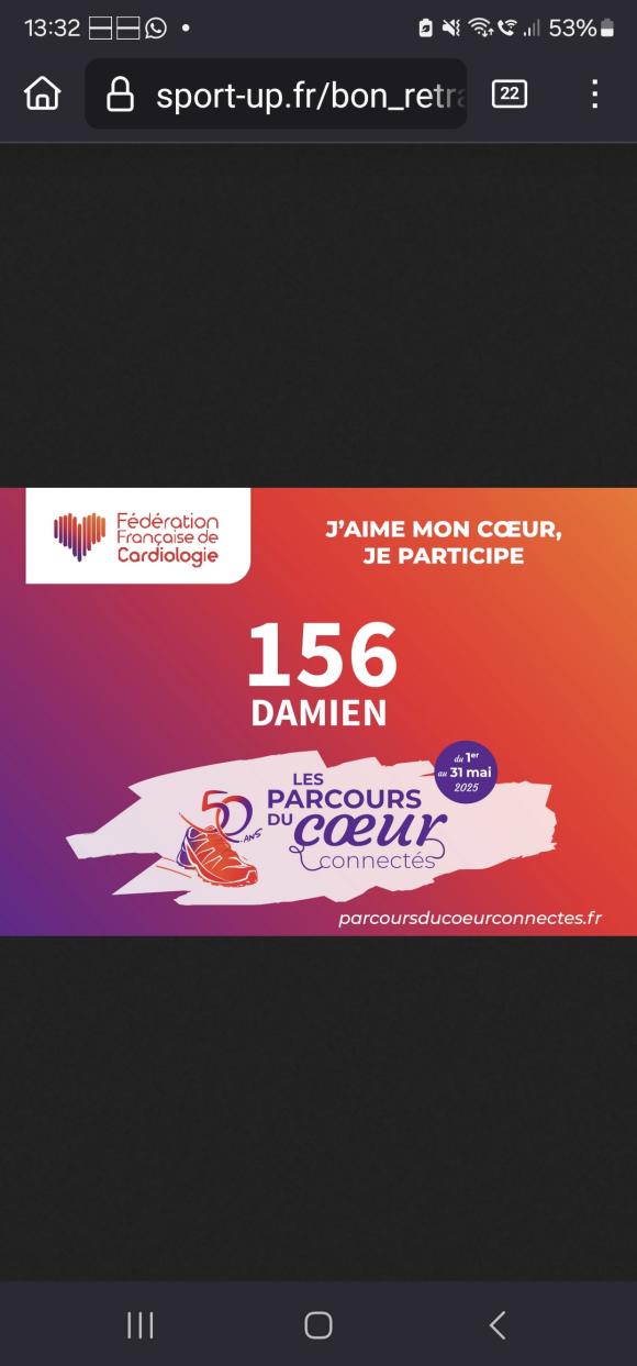 Inscrivez-vous sur https://www.parcoursducoeurconnectes.fr pour cumuler des km au mois de mai, et choisissez bien l'équipe 0-Kikourou