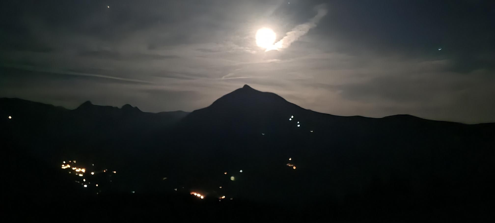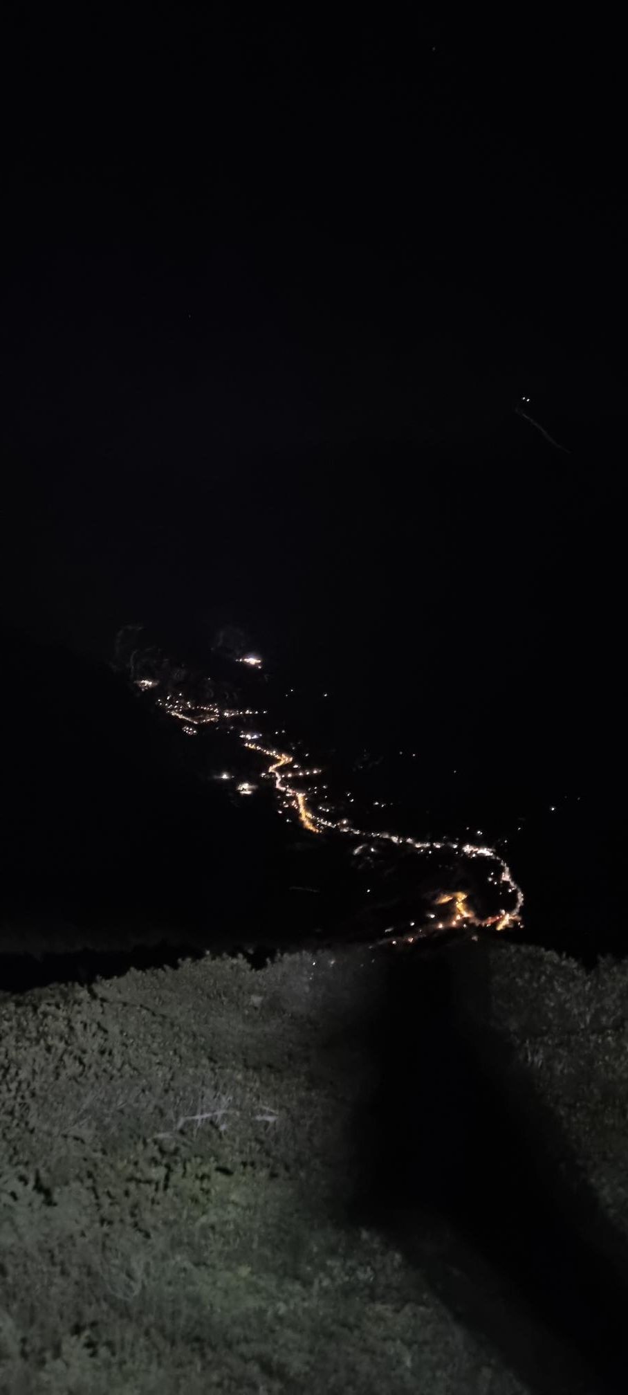(noter les 6 petites lumières sous le Joly qui étaient.....des frontales de futurs finishers du 100, dans la descente vers St-Nicolas...on voyait aussi par intermittence d'autres frontales plus à droite, encore en train de monter, eux)