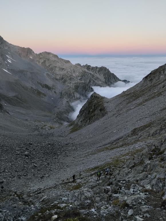 Ca va le soleil s'est levé quand j'ai commencé la montée du moretan donc j'ai eu un beau panorama en haut du moretan avec une petite mer de nuages:
