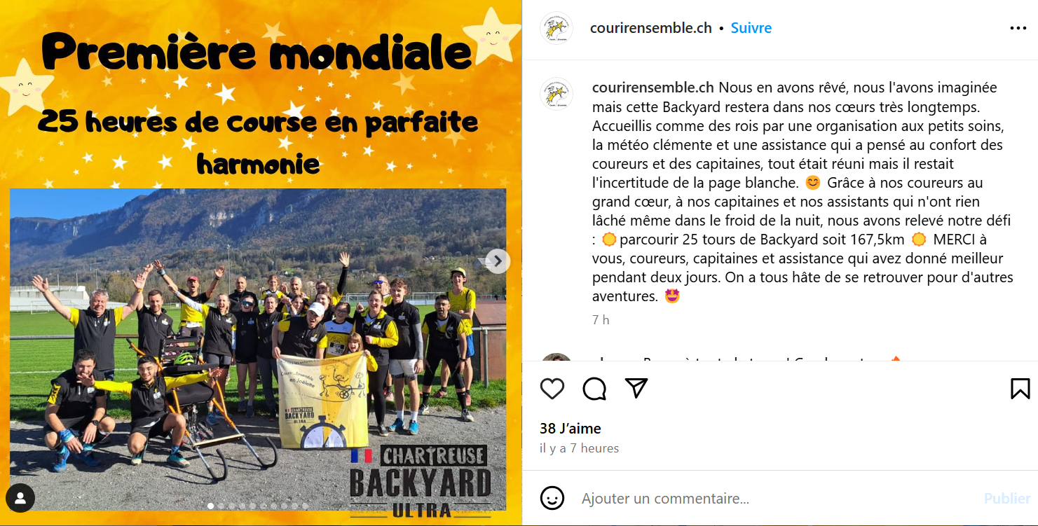 L'association Courir...ensemble de chococaro va faire une 1ère mondiale lors de la backyard Chartreuse du 1er novembre.