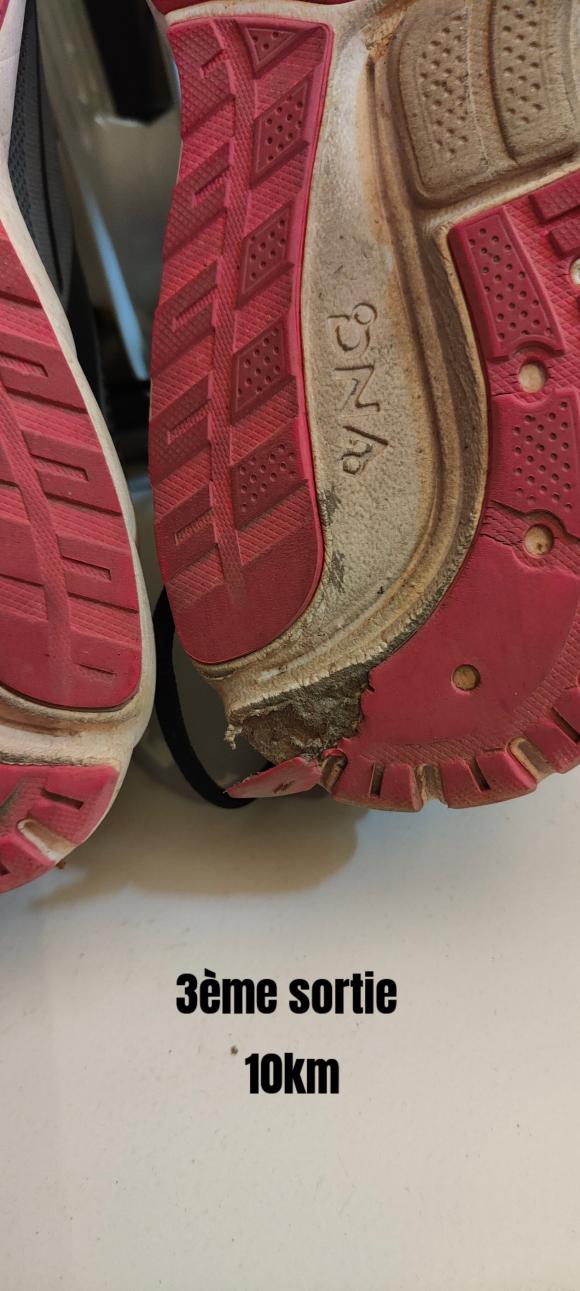 Voilà des photo des "trace 2" .Celles avec la semelle mauve il faut comprendre 3x10km soit l'état après 30km .