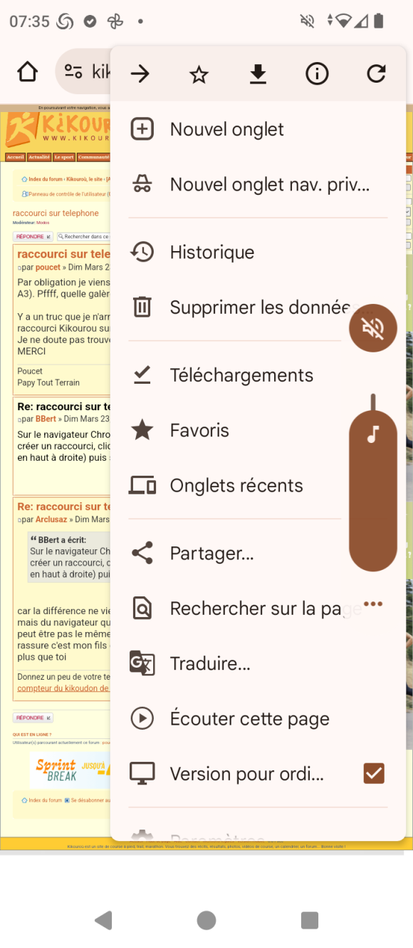 Ayant un smartphone depuis peu :oops: , j'ai suivi vos astuces. Sous "traduire" j'ai bien une ligne "Ajouter à l'écran d'accueil" que j'ai utilisée.