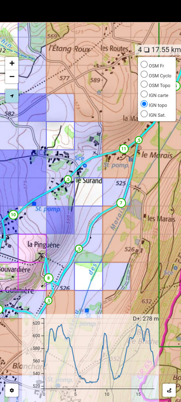 Les boutons en bas du panneau des parcours change un peu et j'ai ajouté un bouton pour afficher ou non les marqueurs personnalisés.