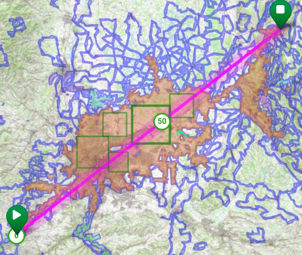 Mais, bon, j'ai déjà dessiné un joli parcours de vélo pour commencer le travail autour de la trace que j'ai déjà pour faire cette liaison et qui date d'un vieux défi à la con "et si je rentrais à pied de la maison de Normandie". Je vais déjà élaguer sur deux roues les carrés atteignables ainsi, et le reste se fera à coup de combinaisons VTT (pour les chemins de tracteur) et baskets (pour les champs labourés...ou pas... entre les chemins de tracteurs).