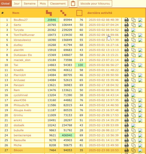Bikoon a écrit:On dirait bien qu'il y a une connection qui ne se fait plus Strava / Squadrats / JJAB![]()