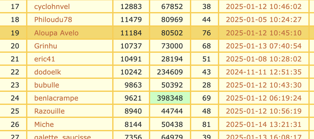 SevenWil a écrit:Bikoon a écrit:Je m'auto réponds car en ne faisant pas ma feignasse de base, j'ai mis à jour quelques sorties à haute valeur ajoutée en gros carrés et la différence Squadrats vs JJAB est tombée à 4