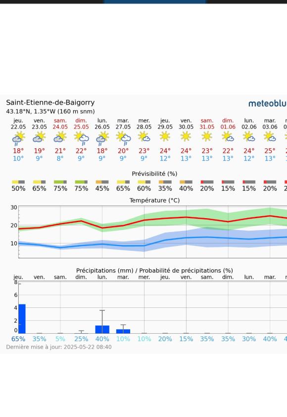 Météo France prévoit maintenant de possibles orages le vendredi après-midi - pas étonnant si on atteint réellement les 34.