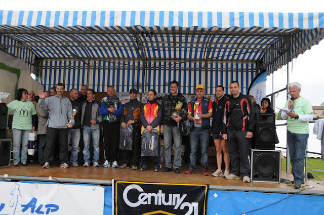 Podium avec l'équipe, que du bonheur. C'est généralement le seul de l'année, alors je profite un max. Encore une belle course. On gagne sans une grosse concurrence directe, mais on se n'est vraiment senti à l'abri qu'après avoir pris un tour à la 3ème heure. On fait 1t de moins que les gagnants 2008 (Villemoirieu) et 2009 (Run'Alp). Tour que je ne suis pas certain qu'on aurait pus aller chercher (4mn), même en se bataillant avec une autre équipe. Mais c'est également la 2ème meilleure perf de nos participations, pas si mal. Et puis l'important était d'être là et de gagner hein, on viendra chercher le record une autre fois (50t - 104km, meilleur tour sous les 6mn, ya du boulot).