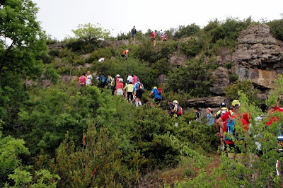 On attaque une énorme montée, un gros mur comme je les aime. Au loin je vois le yoyo et deux relayeurs. La montée est longue et je suis efficace, arrivé en haut j'ai repris du terrain sur eux.