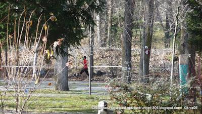 Inscrit pendant que les courses enfants se poursuivaient, j'entrepris de me préparer consciencieusement en réalisant 15' d'échauffement puis deux tours du cross avec un groupe de coureurs. Nous constatons tous que le parcours offre très peu de lignes droites avec des montées-descentes qui s'enchainent, des lacets épuisants. Il va falloir relancer sans cesse vu le nombre de zigzags tout au long du parcours. Au bout de 4 km, je retourne me changer et retrouver mon attachée de presse dénommée ci-après AP ! 13h00 soleil, 10°, un peu de vent et pas mal de monde sur la ligne de départ. Le starter libère la horde de coureurs jeunes et moins jeunes. Le parcours n'est plus une surprise et gère au mieux la première montée sous peine de revivre le calvaire de 2007. Je reste avec un groupe de 4/5 coureurs sur un tempo correct, le parcours difficile nécessite une forte attention pour ne pas chuter voire sortir de route avec un parcours. Nous zigzaguons entre les arbres et tentons de relancer à chaque sortie de virage.