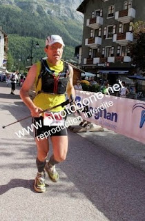 Le parcours est difficile avec un faux plat montant où l'on sait jamais s'il faut courir ou marcher. On suit un chemin carrosable avec de temps en temps des coupes balisées évitant de nombreux lacets. La montée est longue à devenir interminable jusqu'au col. La pente n'est pas très raide et j'alterne marche et trottinage afin de ne pas trop perdre de temps. Arrivée au col du Palet (2650 m) suit la descente jusqu'à Tignes Val Claret. Paysage très minéral au début, on rejoint assez rapidement les pistes de ski. Le parcours toutefois évite les boulevards et nous fait suivre des single track qui nous fond oublier les télésièges. On apprecoit rapidement Tignes le Lac et Tignes Val Claret. La descente ne présente pas de difficulté mais lorsque la pente augmente, je sens que les quadri commence à être dur et que mes pieds souffrent dans les chaussures avec des frottements qui vont surement conduire à des ampoules.