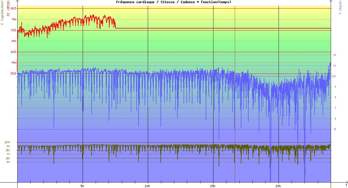 Quant à moi, je ne me soucie pas trop de mon kilométrage, juste de bien relancer à l'approche de la dernière heure sans oser trop accélérer car je suis tout de même bien crevé et je ne veux pas prendre de risque superflu.