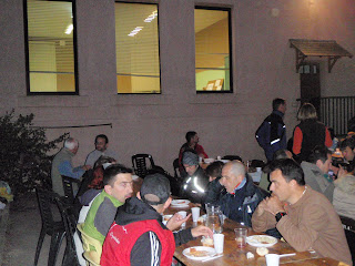 La pasta party se fait en plein air. C'est le grand luxe avec 3 types de pâtes différentes. 1 vrai régal.