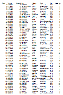 Voilà, j'ai fini, même si la dernière bosse a été faite en marchant, comme beaucoup. Globalement content de cette course. Je manque encore de confiance dans les descentes. Surtout qu'il y a eu de nombreuses descentes dans des sentiers recouverts de feuilles mortes avec de grosses pierres roulantes juste en dessous. Dangereux pour les chevilles et les genoux !!