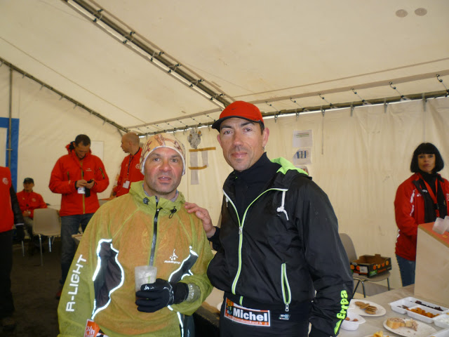 Et dans ce genre de situation c'est toujours le plan foireux qui se met en place: c'est parti pour une bien grosse averse alors que je suis dans le premier tiers de mon tour.... Et merdeeeeeeeeee! Je ne vais quand même pas taper un sprint ou faire demi tour! Allez, nouvel arrêt au stand pour enfiler la veste et c'est reparti. Oh mais c'est l'ami Francis au bord du circuit. C'est sympa de venir nous encourager avec cette superbe météo!