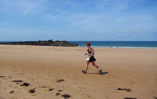 Quatre kilomètres de sentier des douaniers, nous terminons notre pain blanc avant d'aborder les premières difficultés, en l'occurrence les passages sur les plages qui seront au nombre de sept, un bon casse rythme qui nous sera finalement assez favorable. Pointée dans les 530 vers le 15ème km, Katia va gagner environ 80 places dans la deuxième partie plus technique de la course.
