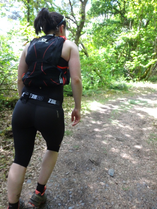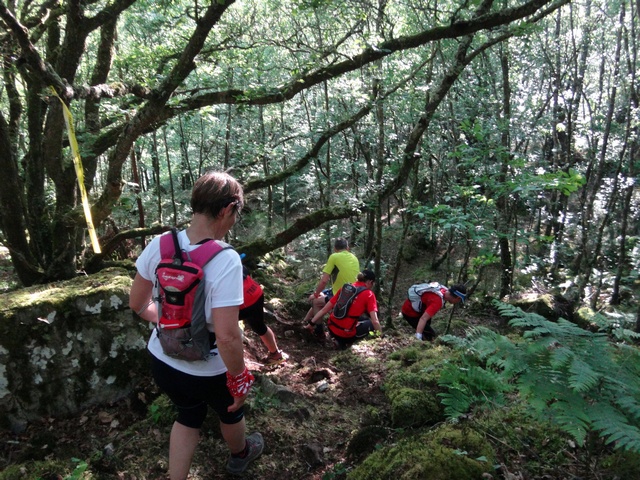 Après le 40ème km, nous nous engageons sur des chemins pour moi inconnus. Le terrain étant très pentu, j'instaure un rythme très particulier de marche suivi de course courte sur chaque faux-plat de quelques mètres disponibles pour obliger les muscles à travailler, ce qui leur évite de durcir. Résultat, au 50ème km, nous sommes toujours en mesure de descendre et de sauter les obstacles sans douleur.