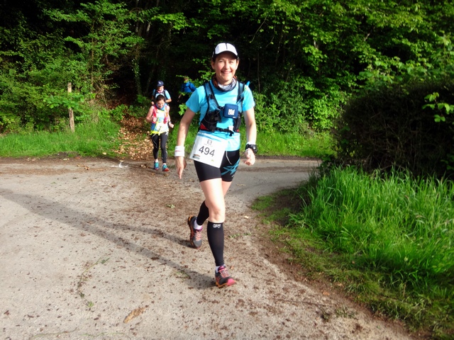 Dernière trèèès longue montée puis descente vers l'abbaye de Bon Repos, ma Josette finit ce trail non sans souffrance mais avec la satisfaction d'avoir terminé en 4h37 une épreuve particulièrement exigeante après une bonne année de blessure musculaire.