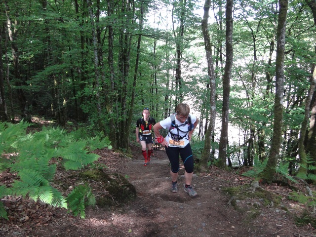 Après vingt kilomètres très pentus, nous avons droit à un terrain raisonnablement praticable, correspondant aux dix premiers kilomètres du trail de samedi.