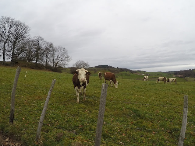 8h30 : Le speaker met l'ambiance, on tape dans les mains, et c'est parti sur des chemins inédits dès le début. On passe plus au nord avec la vue qui s'étend parfois jusqu'à Lyon, c'est sympa. Le peloton reste bien groupé pendant les premiers km où un petit bouchon s'est même formé à un moment, mais pas longtemps, et puis en papotant et en rigolant ça passe bien !