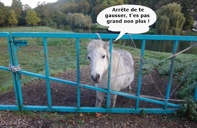 Je dois passer en deuxième position, je fais un dernier cliché de mes coéquipiers et me dirige vers ma navette. Impec l'organisation, je me retrouve bientôt à Acquigny où je peux profiter un moment du paysage fort bucolique en m'échauffant. J'y fais la connaissance d'un curieux personnage, une sorte de Mustang mais avec des moignons.