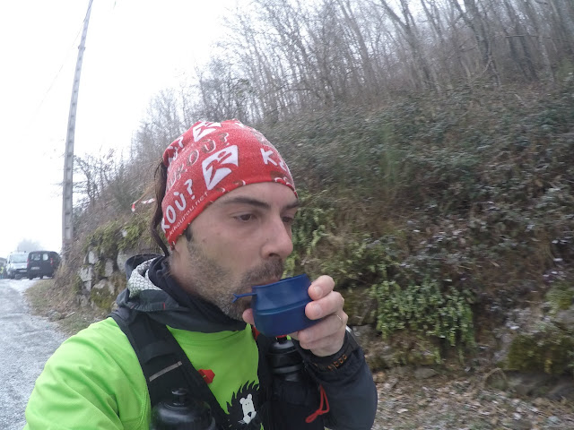 Et voila déjà le ravito du 8e km qui arrive, presque par surprise ! Il faut dire que normalement on le voit de loin, mais là, avec le brouillard ambiant on ne sait plus trop où on en est.