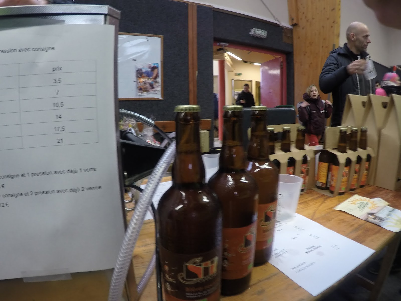 Après 31 km, 1175 mD+ et 3h53 d'effort, sur un parcours encore un peu plus dur (moins facile et aussi moins mou sous la semelle) que l'année dernière, je franchis la belle arche aux couleurs des Coursières et pénètre dans le gymnase de Saint-Martin-en-Haut où la succulente soupe finale m'attend, escortée de ses rondelles de saucisson, morceaux de gruyère et cacahuètes, ça fait bien du bien ! Ensuite je retrouve les copains, la Soyeuse coule à flots alors que la neige commence à tomber dehors...