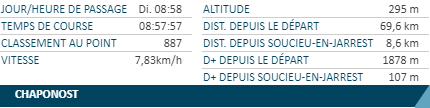 Assez perdu de temps, le passage au ravito sera express. Je rappelle que je suis en mission quand même...