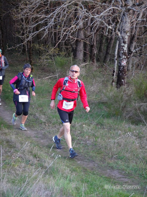 Tenace comme le blaireau qui défend sa mesnie, je progressai horlogèrement au point de revenir sur un groupe de sémillants trentenaires encadrant une donzelle au jarret ferme et à la cuisse avenante répondant au doux nom de Sabrina. Gentilhomme que je suis, je restai un bon moment en compagnie de cette jeunesse mais, sentant leur allure perdre de sa superbe, je décidai à terme de leur fausser compagnie, traçant ma route après l'étape du château des Grottaux où je procédai à mon avictuaillement.