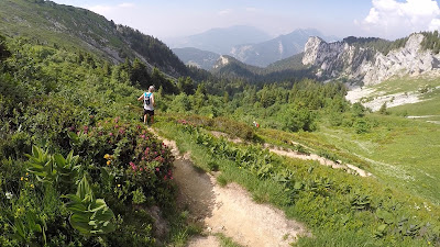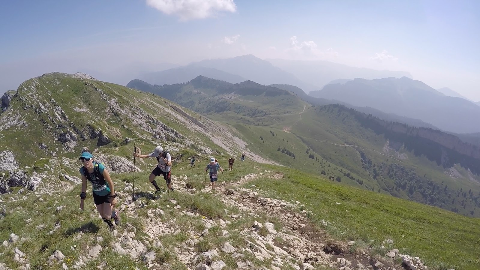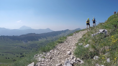 En route vers l'ascension de la Grande Sure, le point culminant du parcours à 1920m, un aller retour sur un chemin technique où il faut être attentif à la pose des pieds et aux coureurs qui redescendent.
