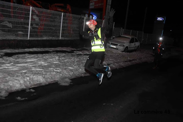 Arrivés au Stade Lafayette du Puy on a une petite heure à patienter au chaud alors qu'il fait -1 dehors, et à 0h02, PAN ! Le pistolet a bien fonctionné cette année et les 325 coureurs et marcheurs sont lancés !
