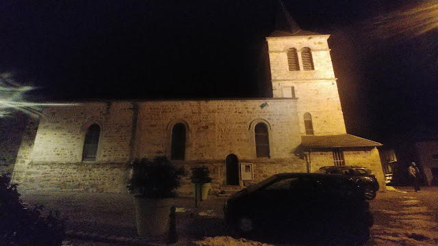 On retourne au local du CLCS où, après avoir récupéré mon carton vert, je prends le temps de me mettre en tenue avant de monter dans l'un des bus de l'organisation en direction du Puy. En route, malgré le noir de la nuit, on observe la blanche neige dans les champs, et il y a la dose, comme prévu. En fait il y eu de grosses chutes de neige deux jours avant et ce qu'on espère surtout c'est que les routes ne seront pas trop glissantes et les chemins praticables.