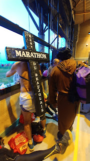A l'arrivée on nous remet un tastevin en guise de médaille et une couverture de survie pour nous isoler de l'humidité ambiante le temps de rentrer dans le marché couvert où se tient le ravito d'arrivée.