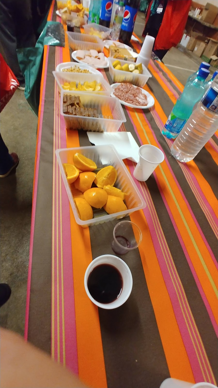 10h38, ravito au château des Ravatys après une petite côte qui fait un peu chauffer le cardio. Il me semble qu'il n'y avait que de l'eau à boire sur celui-ci, en même temps ça tombe bien, j'en bois aussi de l'eau...