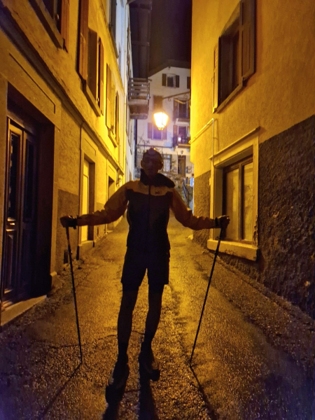La Base de Vie est séparée en deux bâtiments pour passer de l’un à l’autre, il fait froid et c’est loin. Isa m’apporte une précieuse aide pour me diriger, d’abord manger, puis douche puis podo et enfin dodo. Maintenant, il faut dormir c’est 1h30 mini. Je suis resté longtemps à Thyon mais j’en avais besoin.