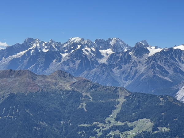 Sur ces portions, le chemin est plus facile, nous passons à Tortin et une belle pause ravitaillement suivi d’un beau raidard sauvage. Derrière, c’est la station Verbier Saint Bernard avec vue extraordinaire sur le Mont Blanc.