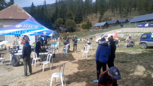 A Utelle, c'est l'après midi, grosse ambiance sur le ravito, j'ai l'impression que tous les gens du village sont là.