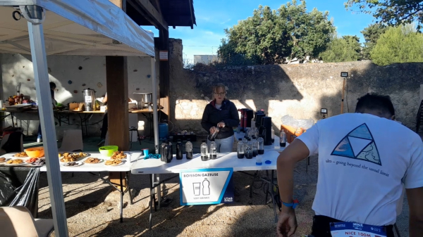 Arrivé à Tourette Levens je récupère mon sac d'assistance (il y a eu un raté à Levens), je re-nok les pieds et l'entre cuisse, je refais les pleins et je repars.