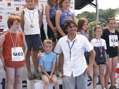 De plus, pendant que je fais ma course, Quentin participe au triathlon avenir : je tiens à souligner la tenacité et le courage de mon gars (qui n'a pas encore 8 ans) qui vient de terminer son 2ème triathlon : Lien.