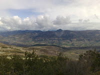 Encore un single dans les bois, légèrement boueux. Je m'amuse dans ce terrain difficile, mon poids léger facilite les appuis là ou je remarque de grosses glissades de mes prédécesseurs. J'ai un bon rythme, personne devant n'y derrière mais je me sens bien. A la sortie des bois je remonte sur une féminine, on atteint le point culminant à 1255m, le panorama est magnifique.