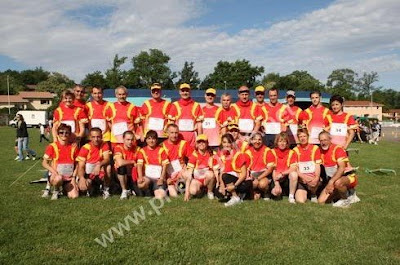 La mi-course arrive. J'ai un peu ralenti sur le 5ème (7'49) tout en forçant plus, ce qui me fait craindre un peu une baisse infernale comme l'an dernier. Mais finalement j'arrive à maintenir ce temps sur les 3 suivants (7'52, 7'47, 7'48). De toute manière maintenant les places sont faites, on a 2t d'avance et 2t de retard, et inversement, ya pas à s'en faire. Mais si on pourrait assurer "pour le plaisir", l'esprit de compétition est toujours là et chacun donne son meilleur, les chronos baissent peu. Perso je me suis fixé de tenter tous les relais sous les 8mn, on se motive comme on peut :)