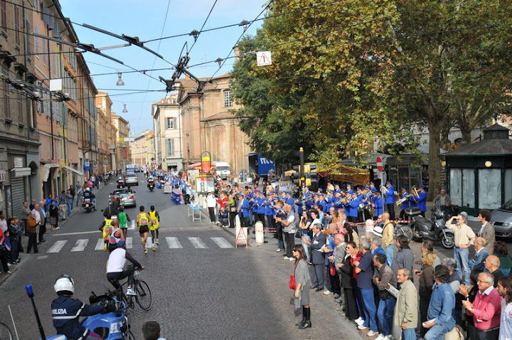 On arrive dans Modena. Un coureur était dans le groupe avec les 4 féminines devant et glisse dans notre groupe. Nous sommes à 3'40'' et nous passons le km 18. Mais j'ai les jambes qui ont des fourmis. Ce sont déjà 4km que je subit le rythme et il ne me convient guère. J'accélère et fait 2 beaux km en 3'35'' et 3'24'' surtout motivé par le publique. Je passe devant chez Nico puis nous allons passer à l'intérieur de l'académie militaire. C'est superbe, les élèves en habit de cérémonie nous applaudissent, j'en ai des frissons.