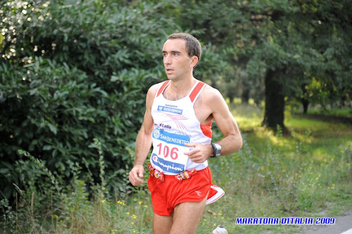 Je me glisse en troisième ligne, c'est parfait. Le marathon est en direct sur Rai3, donc nous aurons un quart d'heure de retard à cause de la retransmission en direct de la course à la télé. Les hélicoptères nous survolent, les motos des caméramans et VTTs des commentateurs sont prêts. Nous faisons une minute de silence pour les disparus du glissement de terrain en Sicile. A 9h15 c'est parti.