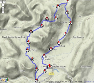 Un peu forcé de toute manière par l'intendance familiale, je laisse passer la semaine, ca revient doucement. Je le sens encore au début du week end, mais le kiné m'a affirmé que je pouvais faire une sortie sans risquer d'aggraver la chose. Et comme mes demoiselles sont de retour à la maison samedi, je peux me permettre d'accompagner mon pote Manolo sur les foulées de Crossey, à 5mn de chez moi.
