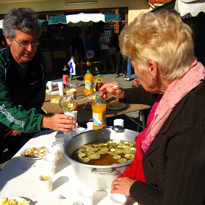 Le froid du matin à laissé la place à un grand soleil et la machine à bières fonctionne bien.