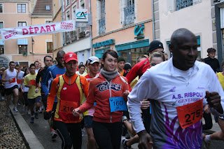 Pour être bien sûr de me torpiller j'attends le dernier biberon de Zoé, qui tarde, et ne me couche qu'après 3h pour un réveil à 7. Nickel. Évidement avec toute la logistique d'un nouveau né, on débarque juste à l'heure pour que je récupère un dossard, et je n'ai pas le temps de m'échauffer avant de me pointer au départ. La totale donc. Sur la ligne ya du monde. Et du beau monde. La course est organisée par le club de Bourgoin (CSBJ), j'vois quelques t-shirt Spode, et le club de Rispoli - dont le président est je crois de Cremieu - nous a carrément sorti la grosse artillerie des Burundais(e)s. Avoir des gars qui valent moins de 29' au 10km sur une course à saucisson, je ne m'y attendais pas trop, on oubli les places d'honneur :)